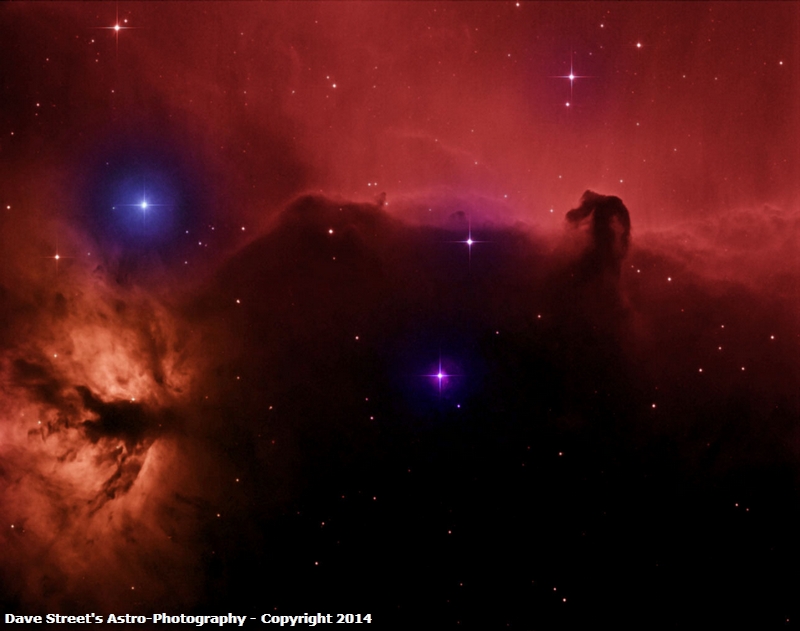 IC434 the Horsehead and Flame Nebula in Hydrogen-Alpha (Ha)