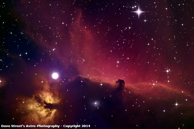 IC434, B33 and NGC2024 HorseHead and Flame Nebula in Narrowband Ha, SII, Hb - ST10XME