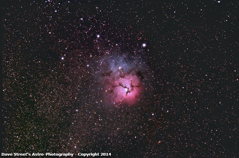 This image of the Trifid Nebula is composed of 10 600-second frames shot with a QHY8 One Shot Color