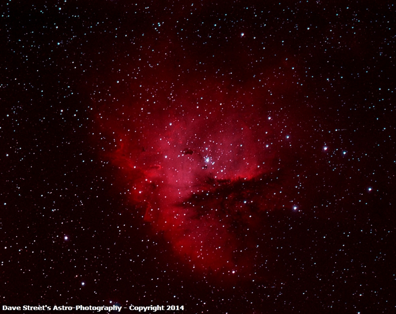 NGC281 Pacman Nebula, shot at Home in San Antonio, TX 10/24/05, Camera: Starlight Xpress HX916, Scope: Televue NP101 f5.4 on Astro-Physics 900 QMD mount,RGB = Ha OII OII respectively,Ha=12x10min, OIII=12x8min total 216 minutes, Autoguided with DSI Pro in FS60C, Captured with MaximDL, Processed in Images Plus and Photoshop.